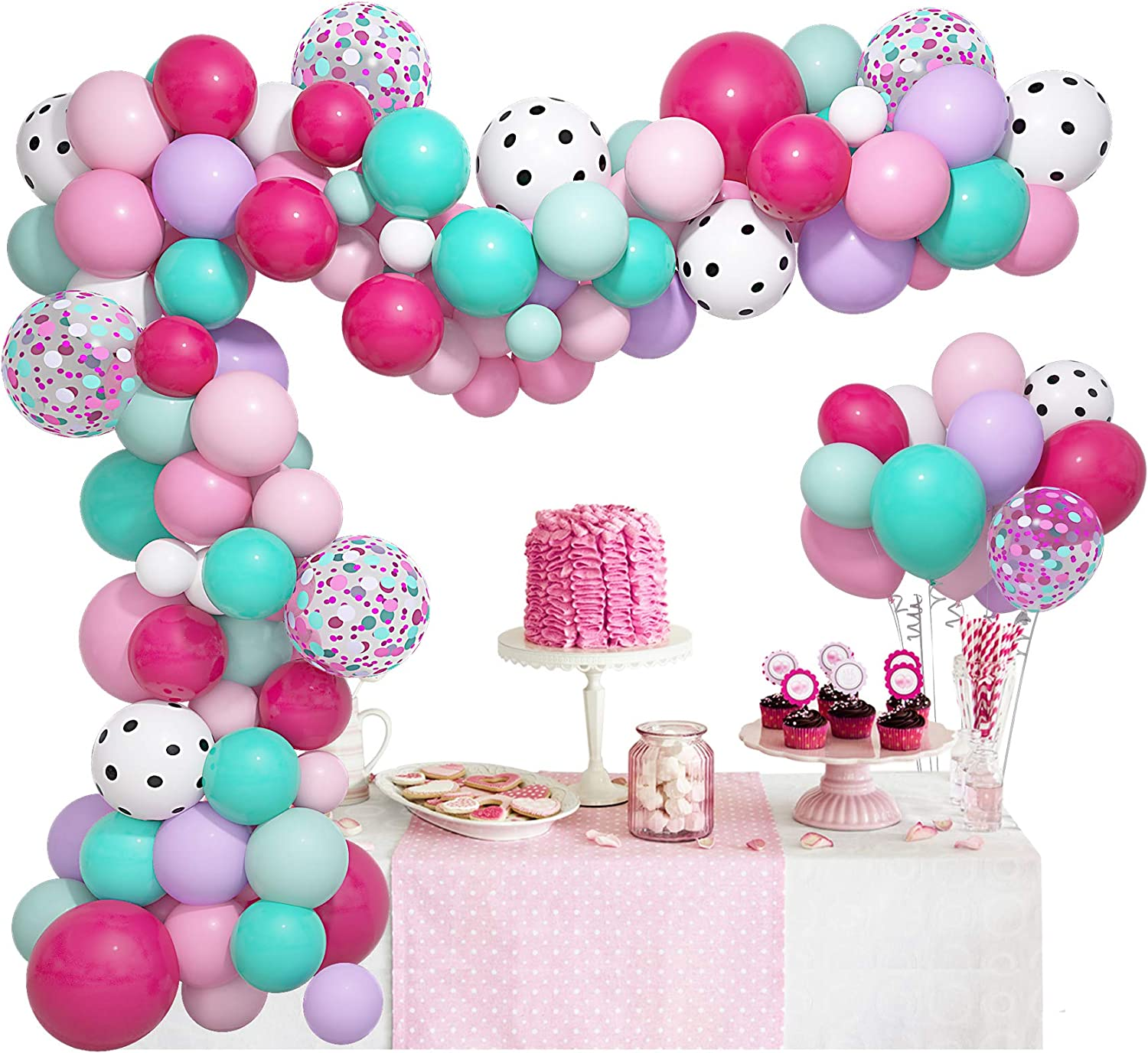 Surprise Party Balloons Garland Arch Kit Rose Red Pink Aqua Blue White Polka Do Ebay